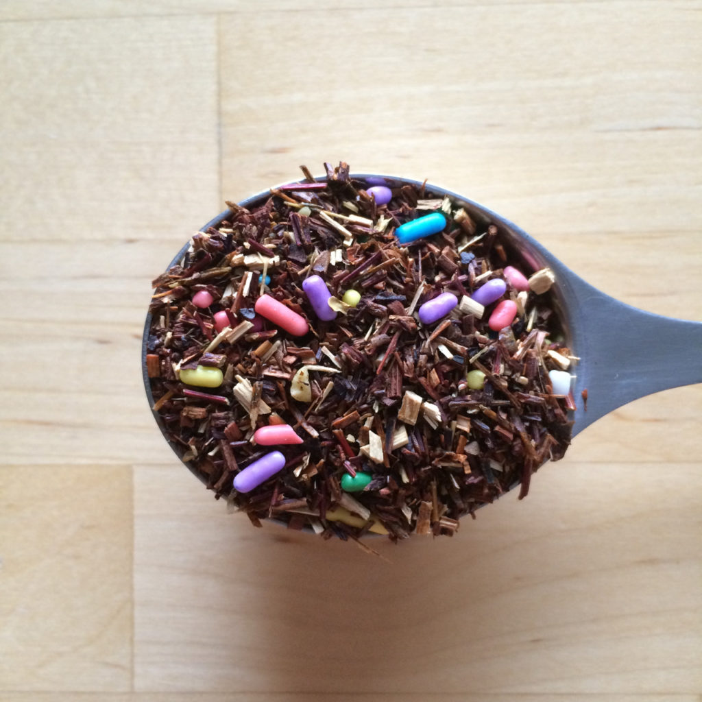 Ingredients: Red and green rooibos, honeybush, sprinkles (sugar, corn starch, partially hydrogenated vegetable oil, soy lecithin, dextrin, confectioner’s glaze, natural and artificial flavouring, carnauba wax, Yellow 5 lake, Blue 1 Lake, Red 40 Lake, Red 3, Blue 1, R[…]